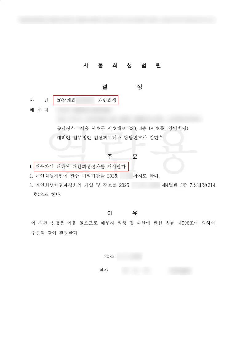 | 인가결정 | 2025년 5월 | 변제계획 확정 |